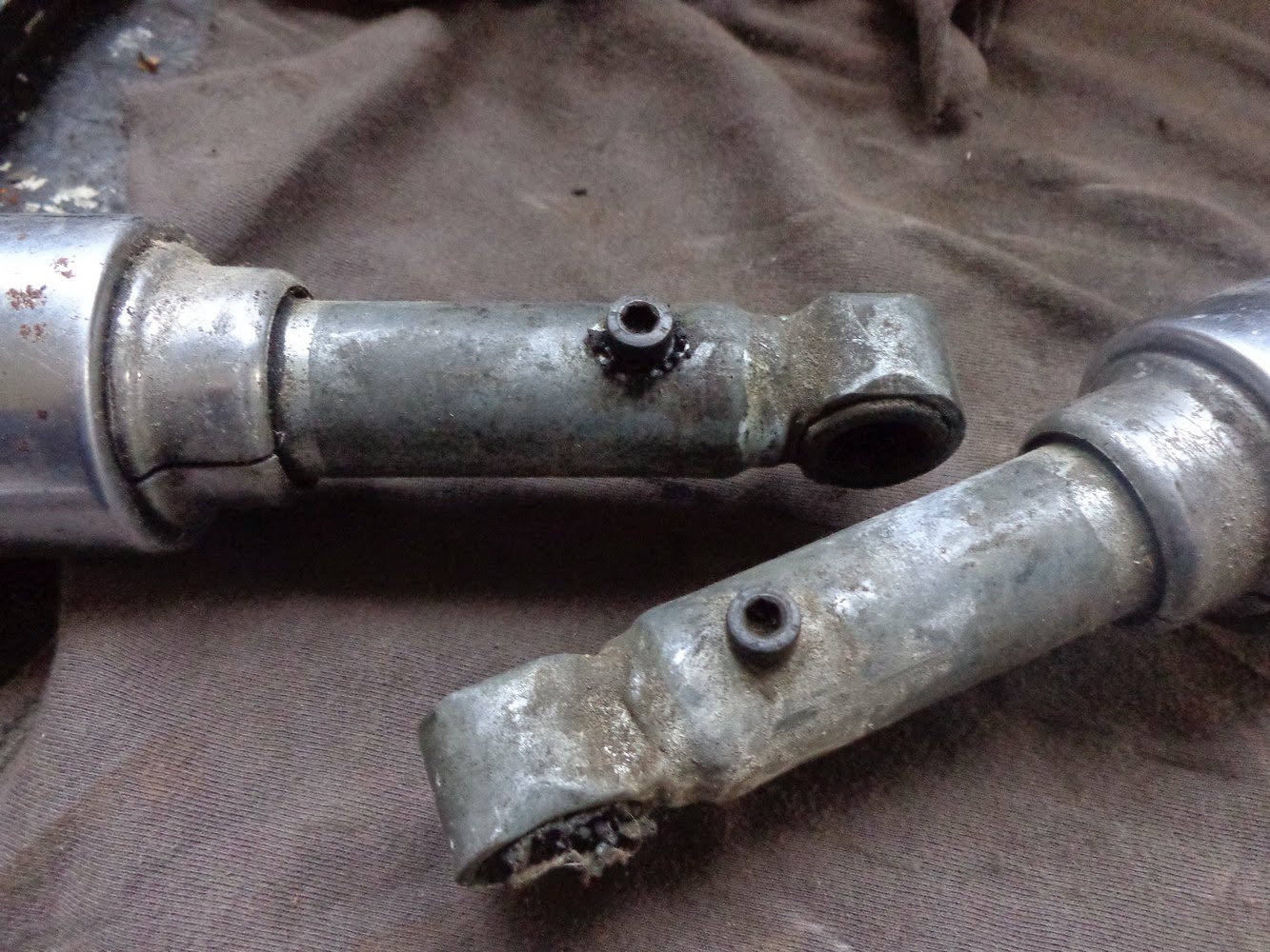 A noter qu'une paire a été transformée par l'adjonction d'un puits fileté qui permet une vidange  de l'huile du corps de l'amorto. Pas couillon comme idée, mais est-ce vraiment utile ?